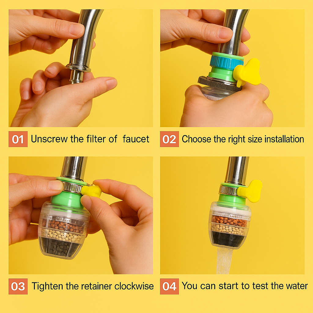 - 🔧 Quick Installation – No tools or plumbing needed. Attaches directly to most standard faucets in seconds.